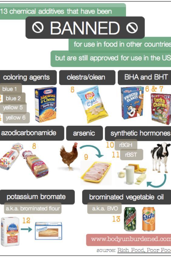 Sadly the United States allows way more chemicals and additives in our foods that are actually banned in other countries. They have been linked to all sorts of health disorders and other countries recognize this, yet the US contines to allow them. We need to do our own research and be our own advocates. Below is the link for the article that goes with this graphic from bodyunburdened.com and a video from Dr. Livinggood (yes that's actually his name:) speaking on this subject.